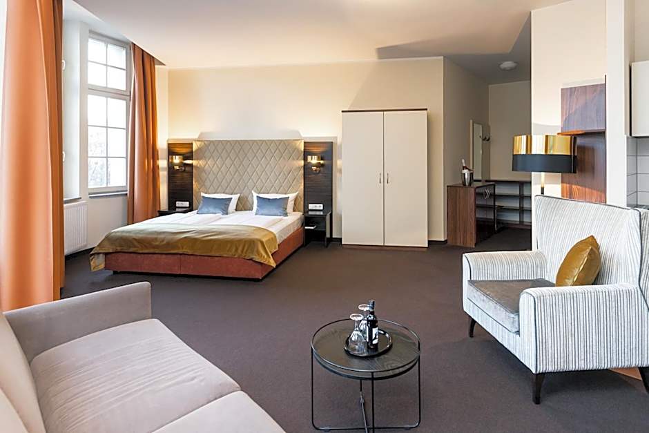 Offering free toiletries, this suite includes a private bathroom with a bath and a hairdryer. The suite's kitchenette is available for cooking and storing food. The suite has carpeted floors, a seating area with a flat-screen TV, a tea and coffee maker, a wardrobe as well as an inner courtyard view.